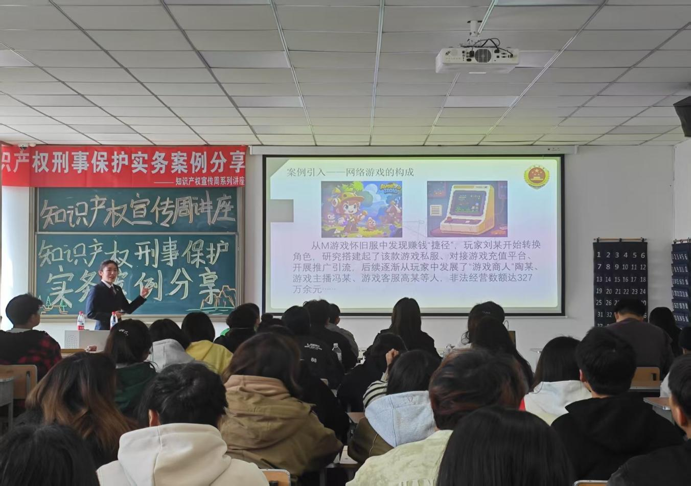 讲座中,李梓菁老师以深入浅出的方式,从知识产权的概念、特征、法律体系等基础理论切入,帮助同学们夯实专业根基。在讲到知识产权刑事保护的重要性时,李老师特别指出:"随着数字经济的快速发展,知识产权犯罪呈现出跨地域、技术化、隐蔽性强等特点,刑事保护作为法律体系的最后防线,在维护创新生态中发挥着不可替代的作用。"随后,李老师结合经办的典型侵犯游戏著作权案件,为同学们抽丝剥茧般地还原案件全貌。她以某热门手游侵权案为例,详细讲解了侵权主体如何通过代码抄袭、角色形象复制等手段窃取他人智力成果,以及检察机关如何运用技术侦查手段固定证据、突破案件难点。在互动环节,同学们踊跃提问,就游戏源代码的侵权认定标准、虚拟角色的著作权保护范围等问题展开探讨,李老师均给予耐心解答,并结合司法实践中的具体判例进行深入分析。