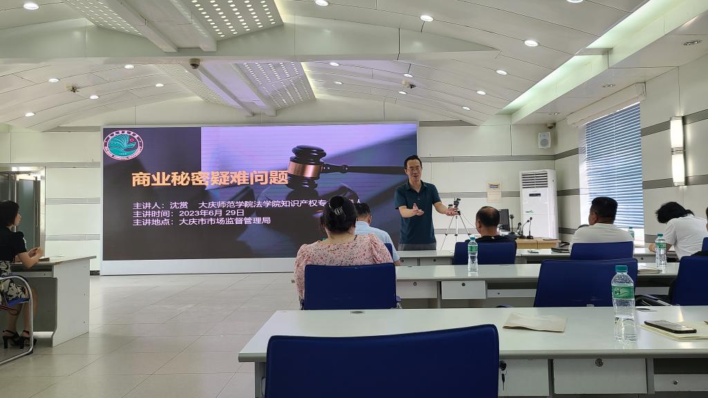 2023年6月29日,公司沈赏副教授应邀为大庆市市场监督管理局做题为《商业秘密疑难问题》的专题讲座,线下线上近200人参加了学习。本次讲座扩大了公司的影响力,讲座效果获得一致好评。