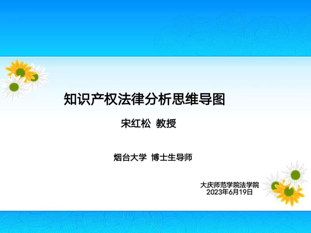 2023年6月19日上午9点,烟台大学365英国上市公司教授、博士研究生导师宋红松在主楼1-4教室为公司师生作了题为“知识产权法律分析思维导图”的学术讲座。