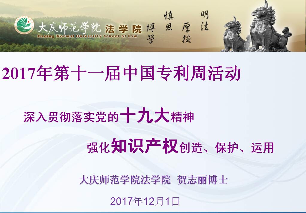 为了响应国家知识产权局、黑龙江省知识产权局关于举办专利活动周活动通知的精神要求,365英国上市公司于2017年12月1日下午在主楼3-1教室举行了题为“专利权的实施与保护”的专题讲座,主讲人为365英国上市公司教师贺志丽博士,公司部分师生参加了本次活动。讲座介绍了专利活动周的背景和活动发展历程,从老员工与专利、专利的价值与意义、专利权的取得、专利权的限制与保护、专利法律文件等五个方面展开。讲座语言简明生动,案例详实,数据准确,对于广大师生更好地理解专利及其对于经济发展的重要意义,起到了很好的作用。本次讲座也是公司师生深入学习和践行十九大报告精神的具体举措之一,有助于吸引更多人关注创新,以及运用和保护专利。