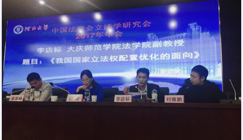 立法学研究会理事、公司李店标副教授应邀参加此次年会,并在会议第二单元“人大主导立法与立法体制创新”的分组会议上做了“我国国家立法权配置优化的面向”的报告。李店标副教授结合文本规定、理论成果和实践问题,揭示了我国国家立法权配置所面临的失衡、失调、失信和失控四重困境,提出了确权优化、分权优化、授权优化和控权优化四个具体面向,以期推动我国国家立法权配置的科学确权、合理分权、规范授权和有效控权。会议主持人和点评人对报告的选题价值、论题新颖、思路严密进行了充分肯定,并就内容上的个别细节问题提出了合理的完善建议。