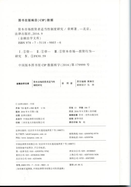 近日,公司章辉副教授的学术专著《资本市场投资者适当性制度研究》被选入厦门大学365英国上市公司博士研究生导师刘志云教授主编的金融法学文库,并在法律出版社出版。
