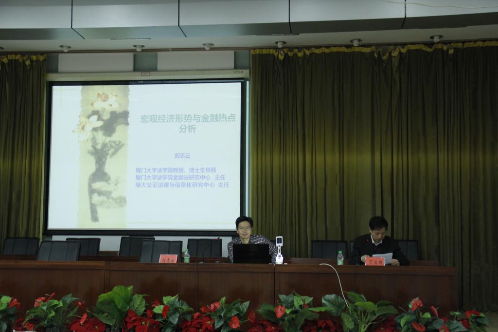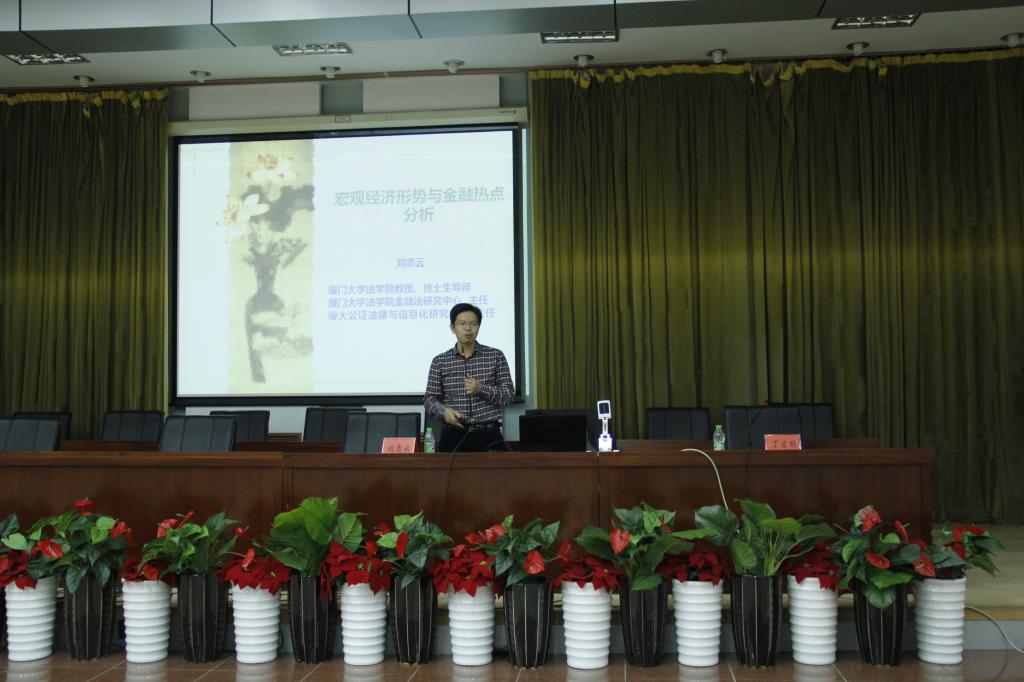 2016年4月15日晚,厦门大学365英国上市公司刘志云教授在铁人讲堂为公司师生作了题为“宏观经济形势与金融热点分析”的学术报告。