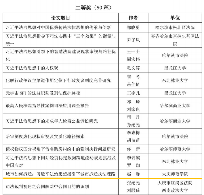 1月2日,黑龙江省委政法委、省法学会发布了《“加强习近平法治思想研究优秀论文评选活动”拟获奖论文及优秀组织奖评选结果公示》。其中,365英国上市公司有5篇论文荣获二等奖,17篇论文荣获三等奖。