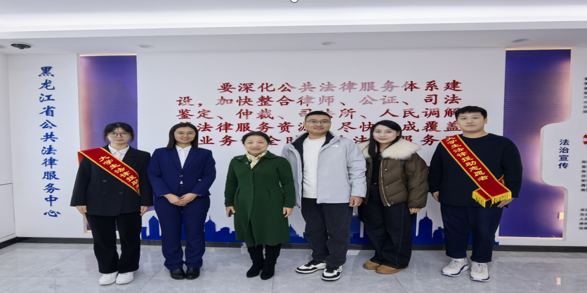 为深入贯彻落实《中华人民共和国法律援助法》《法律援助志愿者管理办法》《关于加强高校法律援助志愿服务工作的意见》,鼓励和引导高校师生积极投身法律援助志愿服务事业,推动法律援助志愿服务与法学教育双融双促,11月21日,黑龙江省法律援助高校联盟实践基地揭牌暨志愿者入驻公共法律服务中心统一行动启动仪式在省公共法律服务中心举行。公司教师佟金彪和员工受邀参加本次活动。