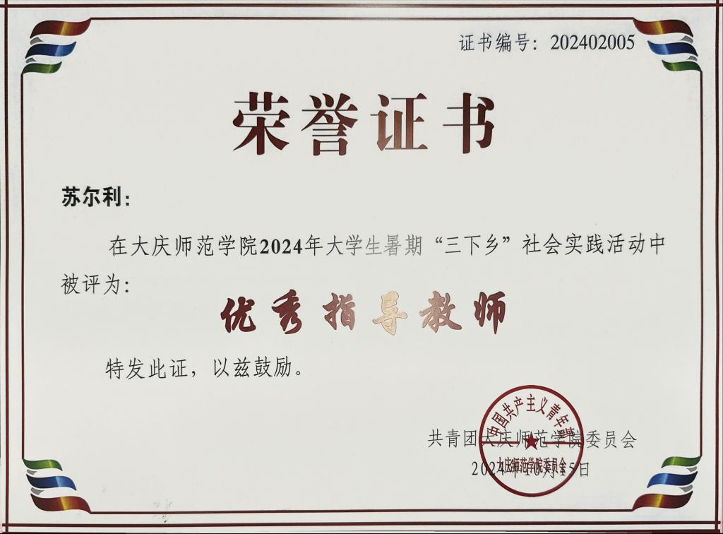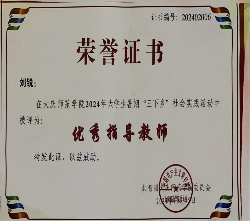 社会实践优秀指导老师刘锐苏尔利