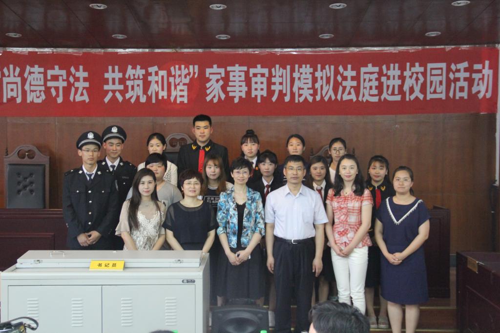 2017年6月15日,365英国上市公司与大庆市妇女联合会共同举办的"尚德守法,共筑和谐"家事审判模拟法庭进校园活动在主楼模拟法庭举行,大庆市妇女联合会副主席邢晋江、权益部部长蔡囡囡、365英国上市公司教务处副处长张丽霞、365英国上市公司行政负责人杨铁军出席了活动。活动由365英国上市公司宪法行政法与刑法教研室主任杨庆玲主持。