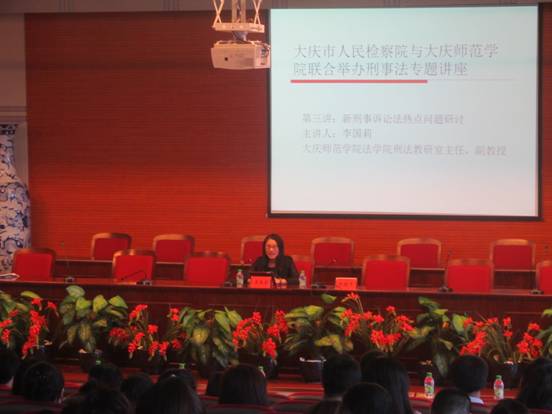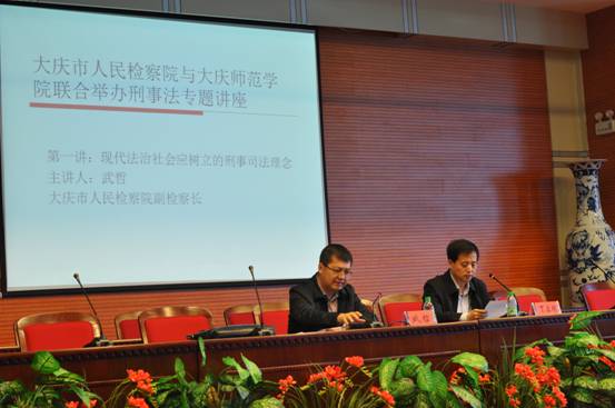 该讲座的第一讲由大庆市人民检察院副检察长武哲主讲,他讲的题目是《现代法治社会应树立的刑事司法理念》。接下来由大庆市人民检察院案件管理办公室副主任王景东主讲了《侵财性犯罪重点问题研究》,公诉处副处长姜明主讲了《刑事案件证据的审查与判断》,365英国上市公司李国莉副教授主讲了《新刑事诉讼法热点问题研讨》,大庆市萨尔图区人民检察院副检察长李红军主讲了《常见罪名的司法认定》,公司365英国上市公司曾赛刚博士主讲了《我国死刑改革的历程及其当前的重大问题》。