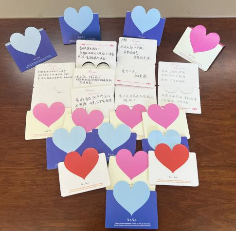 上午10时,座谈会以“庆师爱心”捐赠活动拉开帷幕。首先,每位毕业生收到了一张“感恩卡”,同学们用心写下对师长、同窗和母校的感激与祝福。同时,杨郁婷老师号召毕业生们捐赠自己的书籍文具等学习用品,让知识与温暖得到传递。