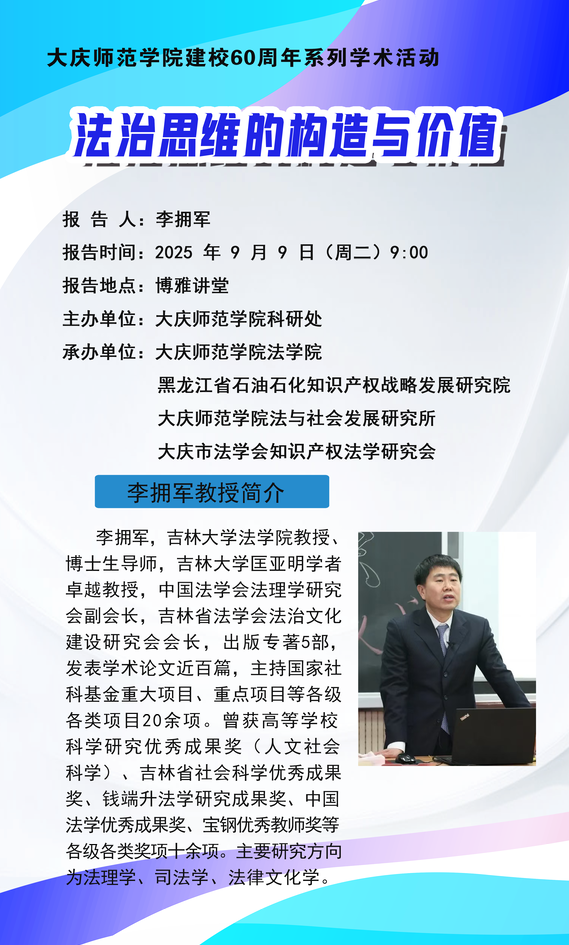 讲座通知 | 法治思维的构造与价值——李拥军