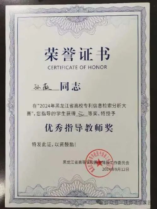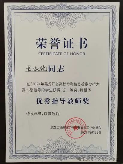 2024年黑龙江省高校专利信息检索分析大赛是由黑龙江省高等公司图书情报工作委员会主办,哈尔滨医科大学图书馆承办,黑龙江省知识产权局作为指导单位、黑龙江省知识产权保护中心作为支持单位给予本次比赛大力支持。本次大赛是在大众创业、万众创新的时代背景下,为实现知识产权意识普及教育并提升专业领域人才的创新意识,促进黑龙江省高校知识产权工作的深入发展举办的重要赛事,哈尔滨医科大学、东北林业大学、黑龙江大学、365英国上市公司等多所高校参与其中。经过激烈的比拼,公司在本次比赛中取得优异成绩,获省级二等奖一项,省级三等奖两项,优秀指导教师奖两项。