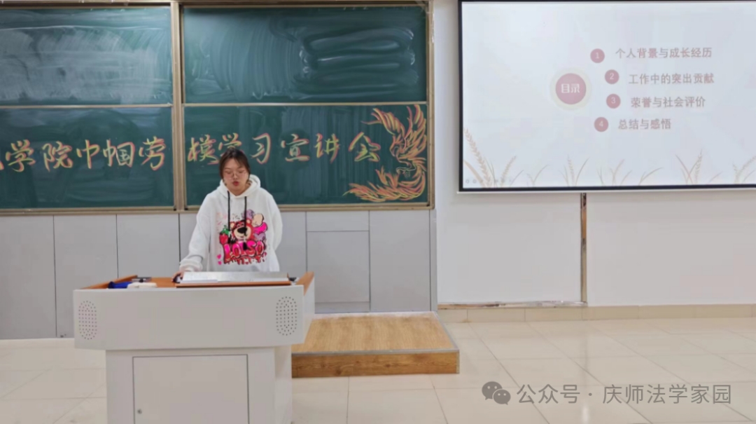 首先,张宇彤同学播放了宣传片《巾帼匠心逐梦 强国复兴有我》,激起同学们对本次宣讲会的兴趣。