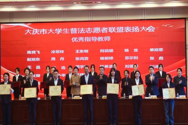 随后,大庆市司法局二级调研员刘凤山宣读《大庆市普法工作办公室关于通报表扬2024年度“大庆市老员工普法志愿者联盟”表现突出的个人的决定》