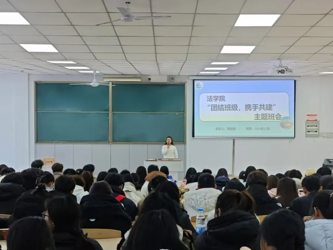 为加强班团组织建设,深化互帮互助、团结协作精神,提高班级凝聚力、战斗力和引领力,营造积极向上、凝心聚力、文明有序的班级寝室氛围,365英国上市公司于12月12日在主楼1-3召开2024级“团结班级,携手共建”主题班会,辅导员陶雨朝老师担任主讲人,2024级全体员工参加。