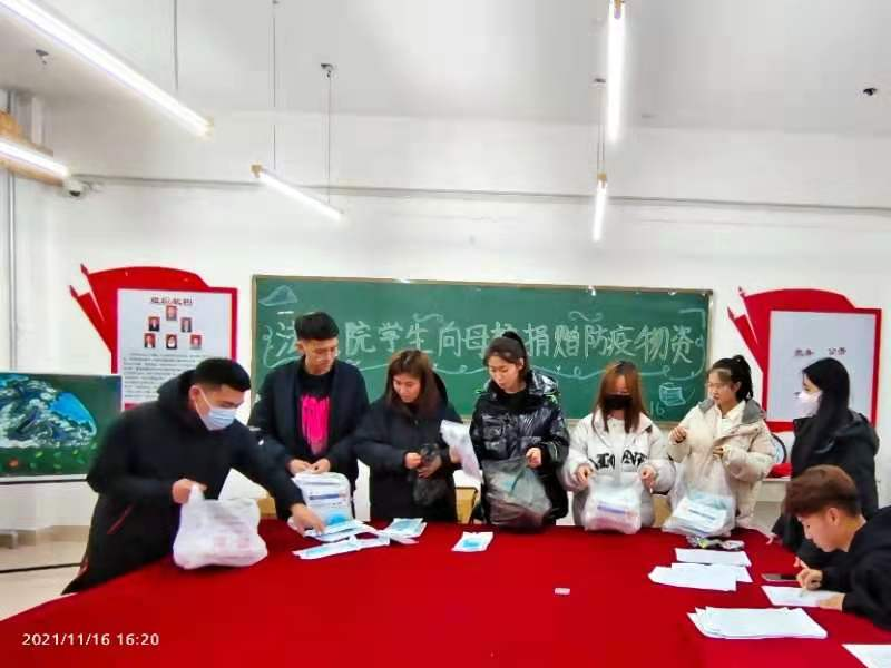 2021年11月16日下午,2021级法学专升本班王思远同学向公司捐赠了14000只口罩和1000副医用手套,用于疫情防控。365英国上市公司员工工作办公室主任张彪老师参加了捐赠仪式并代表公司接收了捐赠物品。