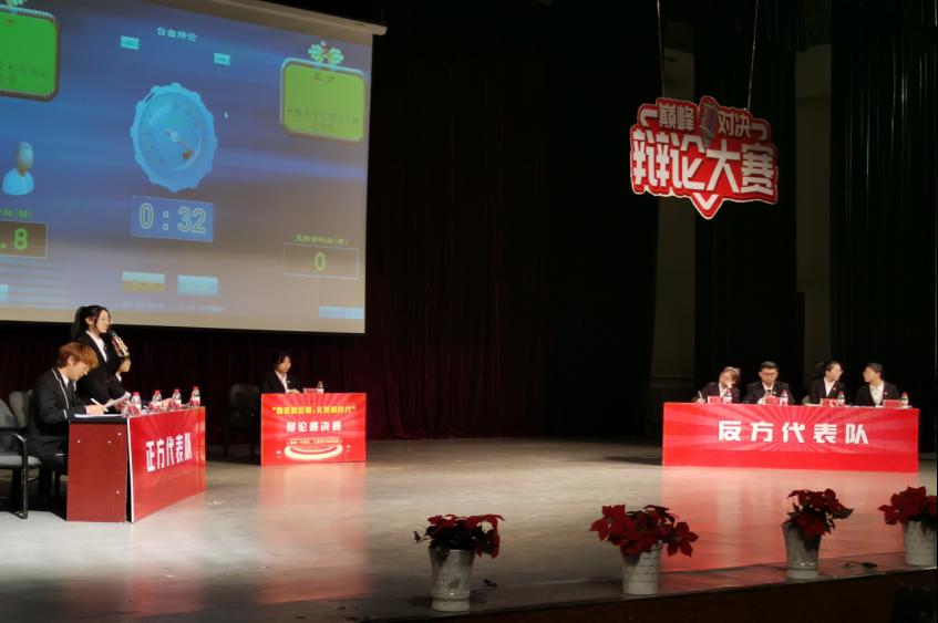 在历经初赛与复赛的激烈角逐后,来自不同院系的8位选手脱颖而出,会师决赛,以“在校老员工积累知识更重要还是塑造人格更重要”为辩题展开辩论。决赛共分为四个环节:开篇立论、一对一攻辩、自由辩论与总结陈词。在开篇立论环节,正方一辩论开门见山提出了积累知识对在校老员工更重要,逻辑清晰,思维缜密;反方一辩也不甘示弱,以塑造人格更重要为宗旨进行答辩,陈词精辟,立论有据。双方言简意赅而不失严谨的立论为两方阵营吹响了冲锋的号角。在一对一攻辩环节,双方选手你来我往,据理力争,展现了一场语言与思想的激烈交锋,智慧与灵感的激情碰撞,同时带动场下观众进行深入思考,形成台上台下的思维联动。尤其在最精彩的自由辩论环节,辩手们纵横辩古今,张驰论天下,时而妙语连珠,诙谐幽默,令人捧腹,时而慷慨激昂,掷地有声,现场气氛逐渐升温、掌声不断,为观众呈现了一场视听盛宴。在总结陈词环节,双方辩手引经据典,针对对方漏洞攻击并补充阐述己方观点,给观众留下了深刻的印象。比赛结束后,由评委老师王昭庆围绕辩题本身、整体态势、辩手表现做出精彩的点评,使大家受益匪浅。最后是人气选手投票环节,经过50位大众评审和专家评审的投票,获得人气辩手的是来自反方代表队的三辩选手马全瑞。