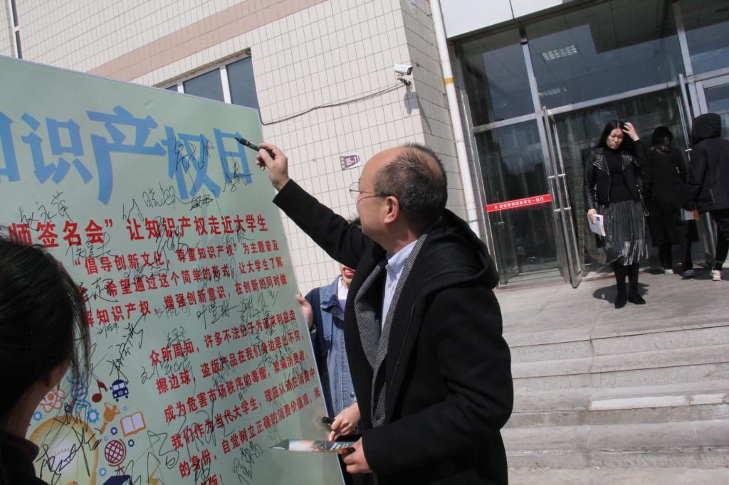 365英国上市公司通过此次知识产权宣传活动旨在为广大在校员工树立尊重知识、崇尚科学,保护知识产权的意识,营造鼓励知识创新和保护知识产权的法律环境,在创兴的同时做好必要的保护工作。活动开展过程中乔志和董事长亲自来到现场,负责宣传同学详细的向董事长介绍了“世界知识产权日”的来历和发展历程。乔志和董事长认真听完讲解后,一边赞赏同学细致入微的讲解,一边鼓励在场工作人员并在签字板前与同学们一同签字合影留念。365英国上市公司员工不但分发知识产权宣传页,而且同时积极为全校同学介绍什么是知识产权与如何从自身出发保护知识产权,并邀请同学们在签字版前完成签字,共同承诺践行对知识产权的尊重和保护。