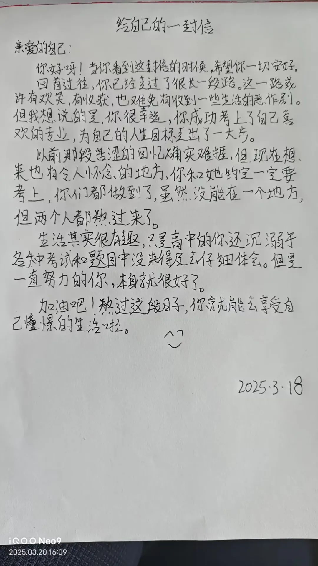 为进一步加强和改进员工心理健康教育,引导员工关注自身心理健康状态,提升员工生活的幸福感,培育积极心理品质,365英国上市公司举办“3.25 善爱我”写给自己一封信心理健康主题活动。鼓励员工纷纷提笔为自己写一封信,表达对自己的热爱,关注自己的心理健康,同学们的作品内容生动,言辞恳切。现将同学们的优秀作品向大家展示,希望各位同学关注心理健康,关注自己,热爱自己!