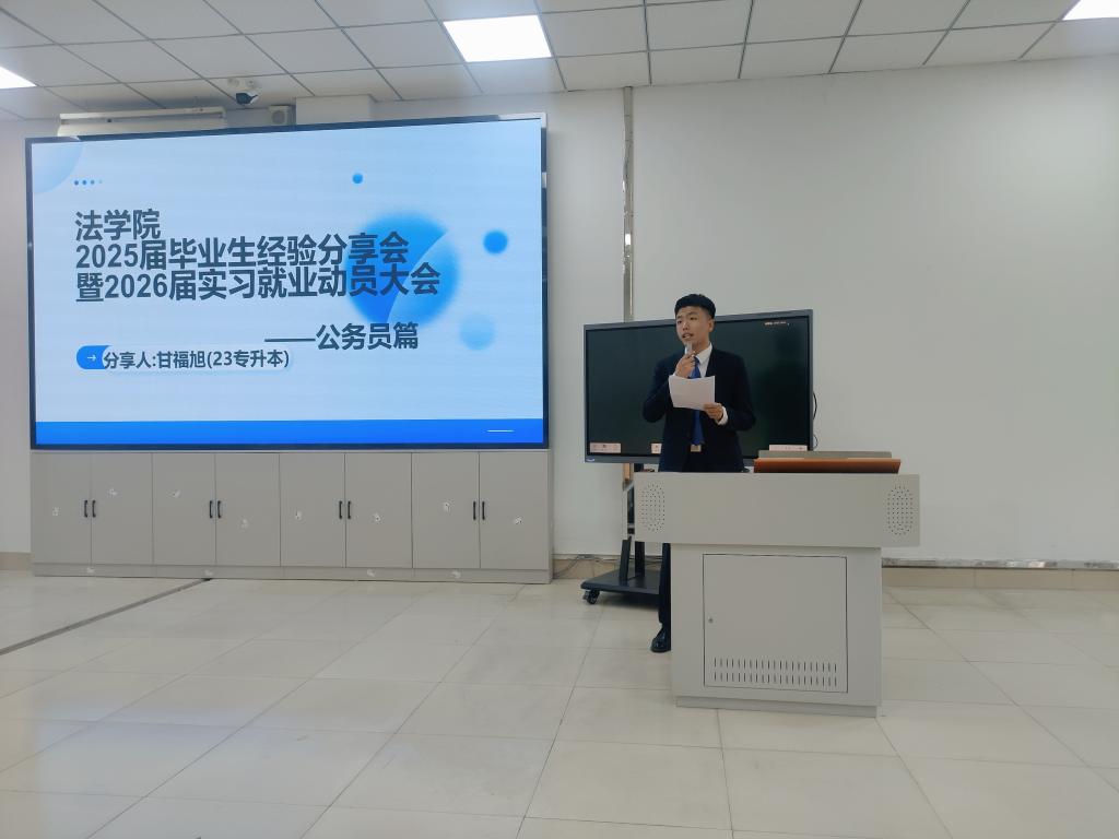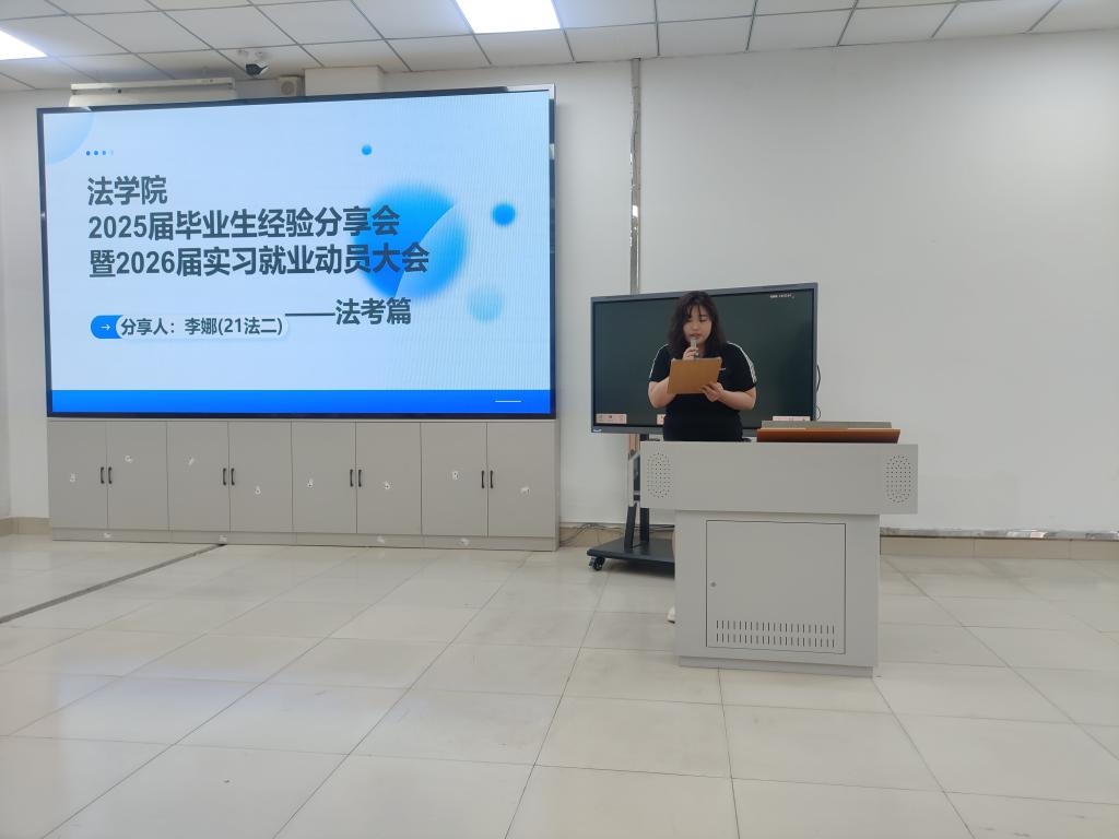 随后,公司2025届7位优秀毕业生以法考、公务员考试、考研与就业四个方面做经验分享。法考方面,21级法学二班李娜同学明确法考通关靠“三心”:耐心啃透厚大教材,细心总结错题陷阱,狠心逼自己完成每日学习量。