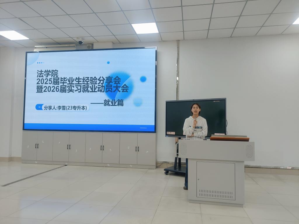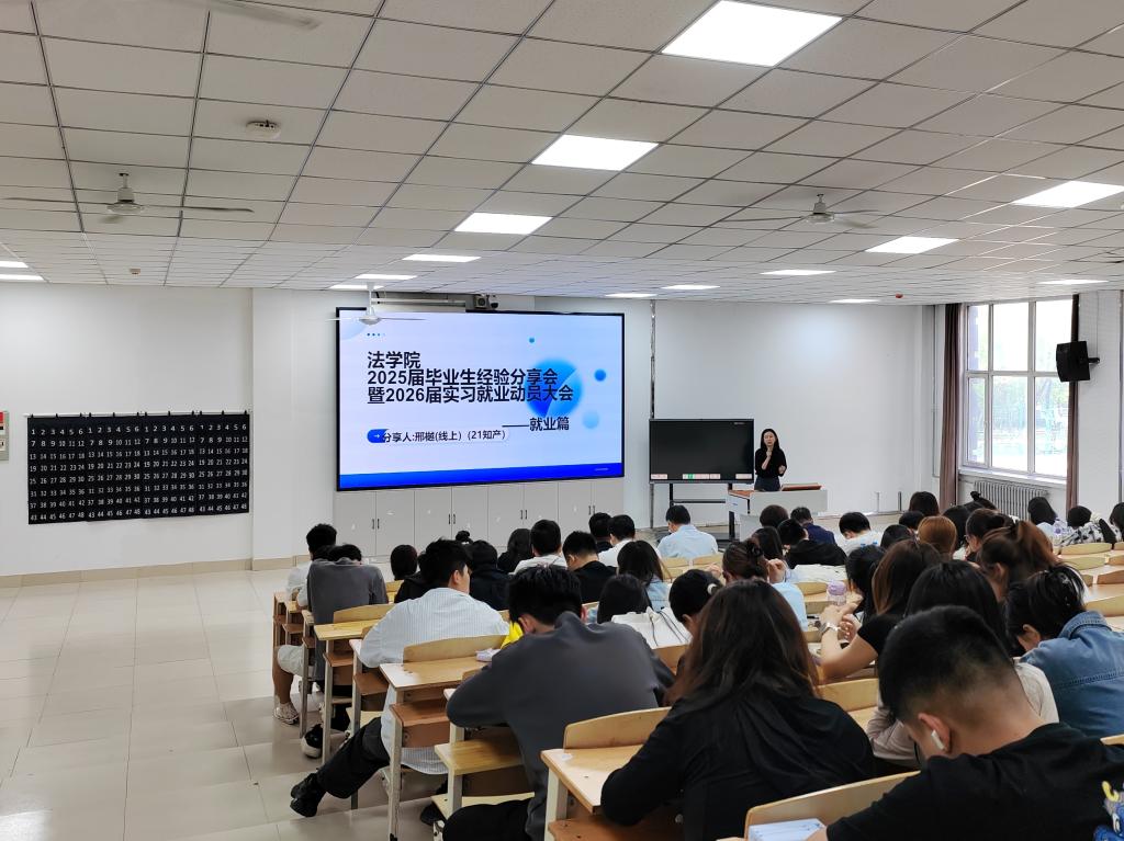 就业方面,21级知识产权邢樾同学讲到老员工应当精准定位求职方向,用实习经历与法律职业资格证增强竞争力,主动投递、多渠道争取机会;