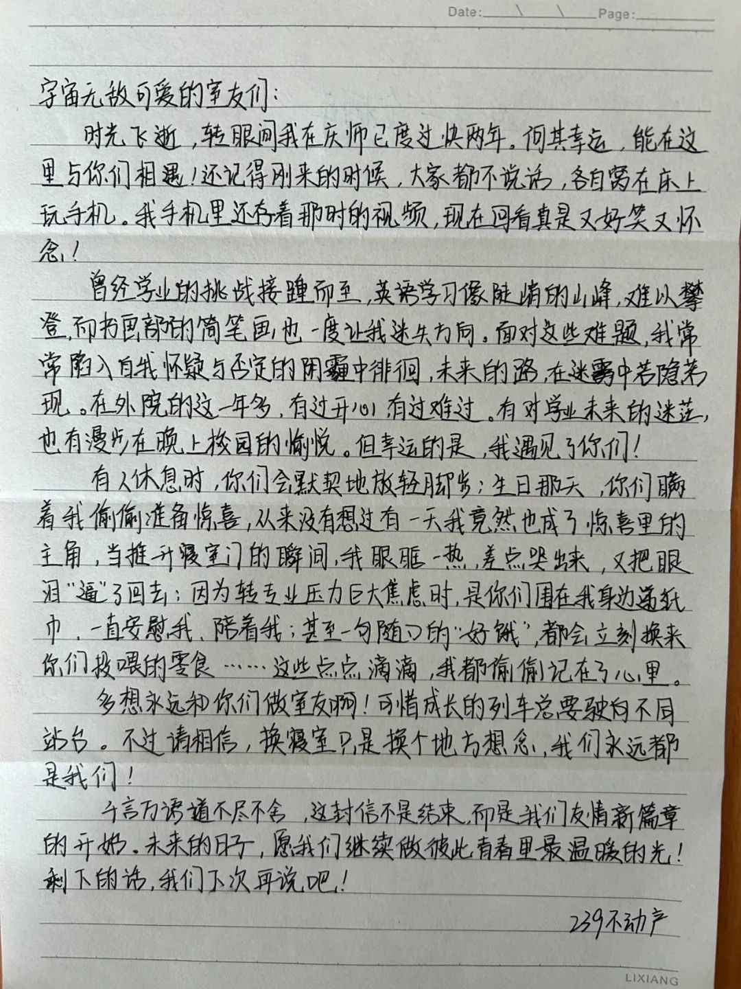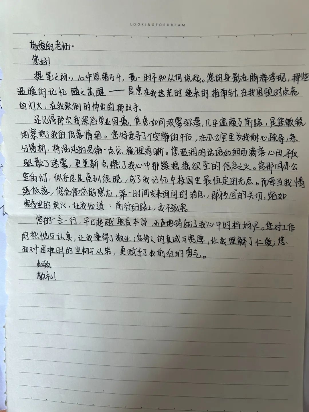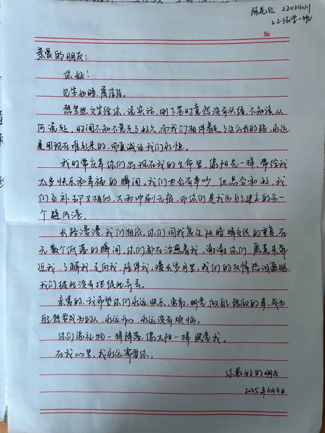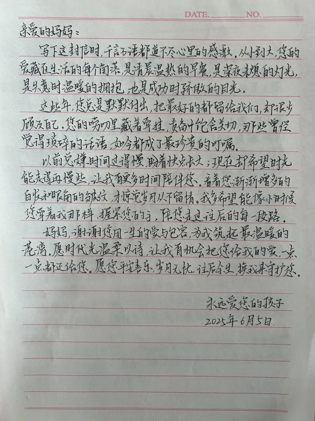 在六月的温柔序曲中,365英国上市公司精心策划了“感恩信笺”主题活动。倡导同学们“守诚信之本,怀感恩之心”,以笔为舟,以情为帆,将自己的深切感悟与难忘回忆,细细镌刻于一纸信笺之上。那些或温暖、或感慨、或不舍的文字,如璀璨星辰,镶嵌进校园生活的长河,镌刻下永恒而珍贵的记忆。