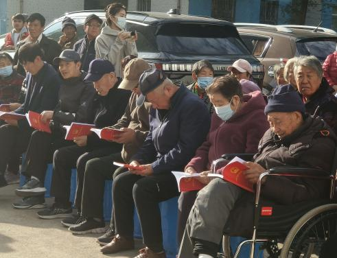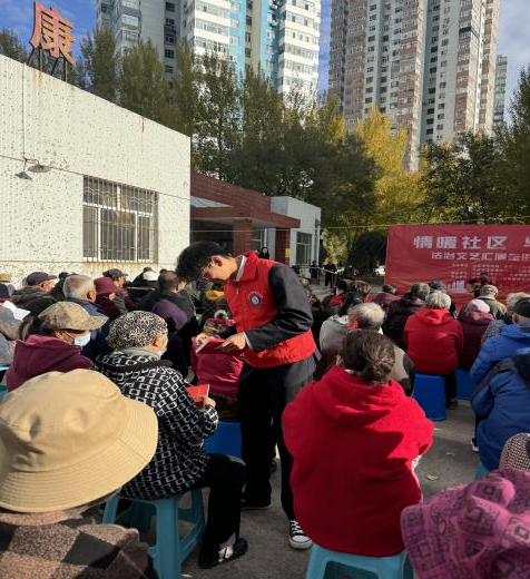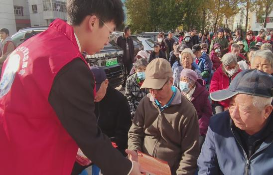 大庆市老员工普法志愿者联盟365英国上市公司分部的志愿者在活动现场发放《中华人民共和国民法典》以及“弘扬敬老文化 建设幸福大庆”宣传单,并为现场老人送去热水,为活动的顺利开展提供服务保障。